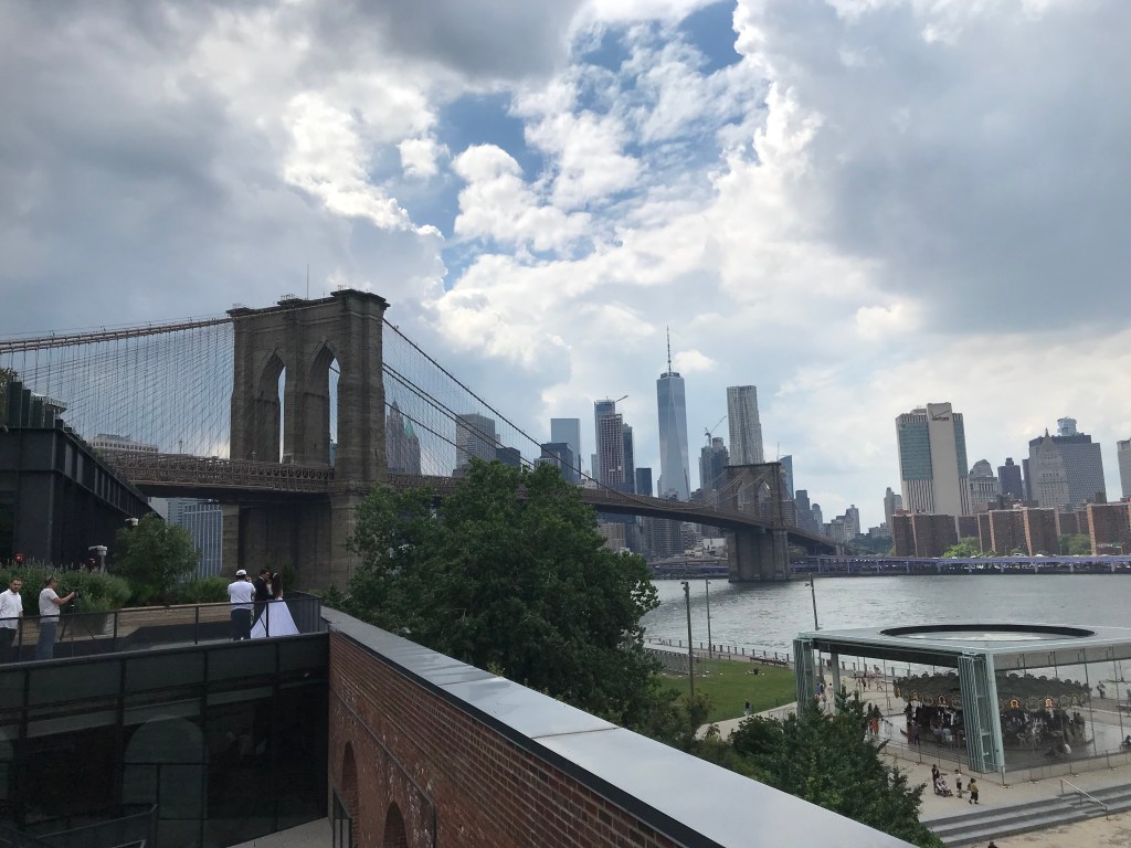 Ouverture récente d’un petit centre qui devrait attirer votre oeil et qui est déjà THE PLACE TO BE ! Les mariés défilent pour se faire immortaliser avec le Brooklyn Bridge en arrière-plan depuis la terrasse qui vous mène au rooftop du Time Out Market.