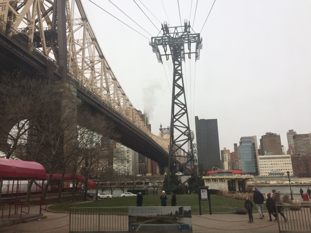 Pour info, La ligne Q112 des bus de la MTA (RBO) dessert également l’île, tout comme ceux des Red Bus de la Roosevelt Island Operating Corporation (d’ailleurs ces petits bus rouges vous permettront si vous le souhaitez, faire un tour de l’île pour une somme d’environ 30 cents) et depuis mai 2017, un ferry assure la connexion Astoria-Roosevelt Island-Long Island City. (source wiki)