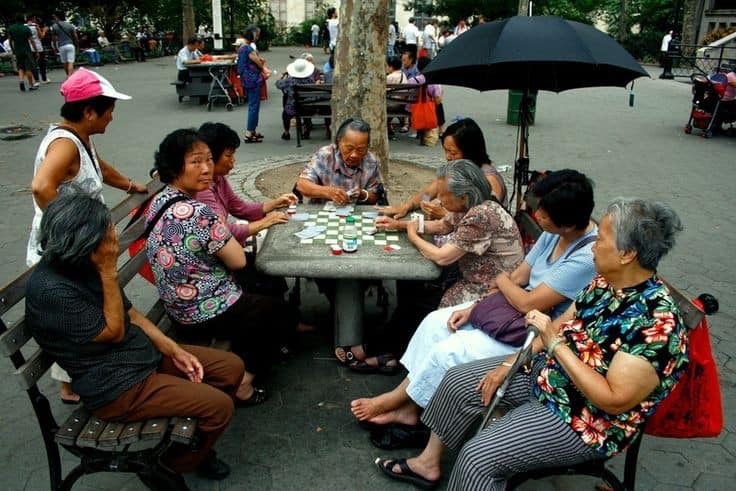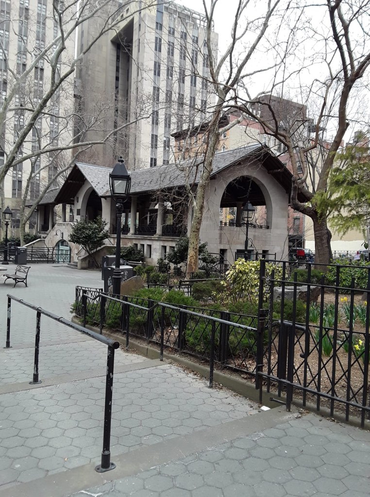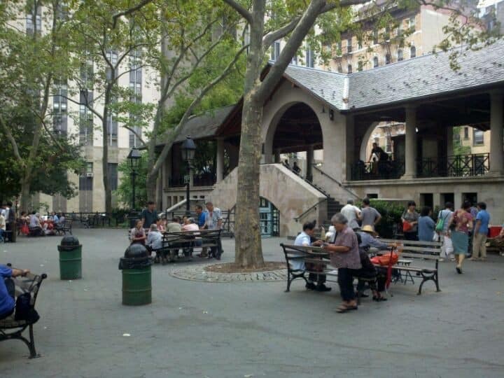 Anciennement connu sous les noms successifs de Five Points Park, Mulberry Bend Park et Paradise Park, ce parc a finalement été baptisé Columbus Park en 1911 en l’honneur de Christophe Colomb et sert de lieu de rassemblement à la communauté chinoise locale pour y jouer au mahjong, faire de la musique traditionnelle chinoise et pratiquer le taï chi chaque matin etc…. (images : pinterest – merci Lulu !)