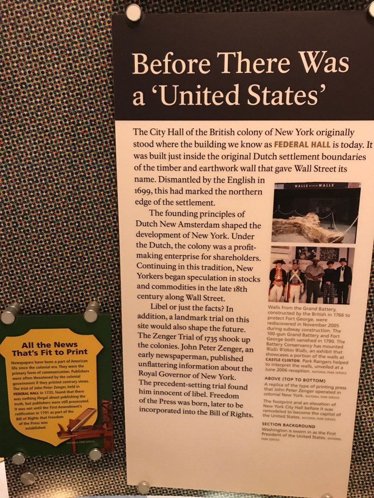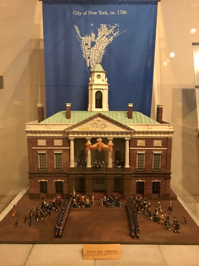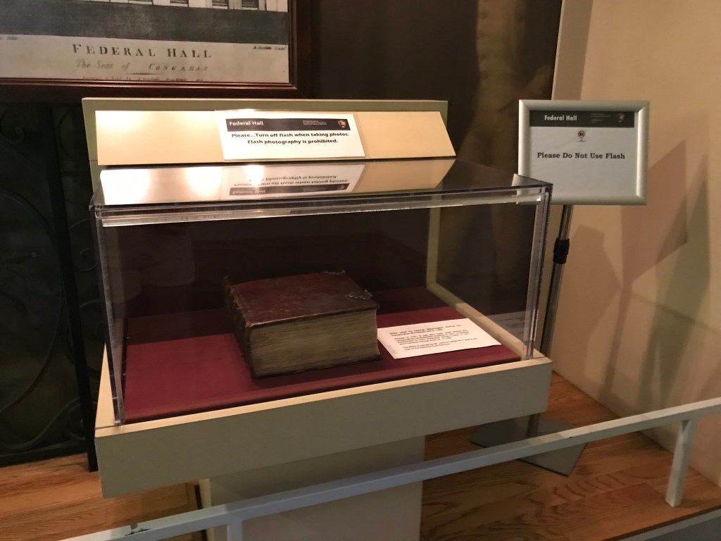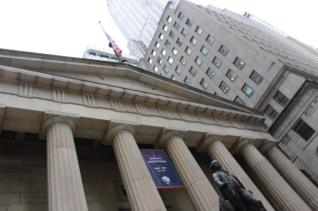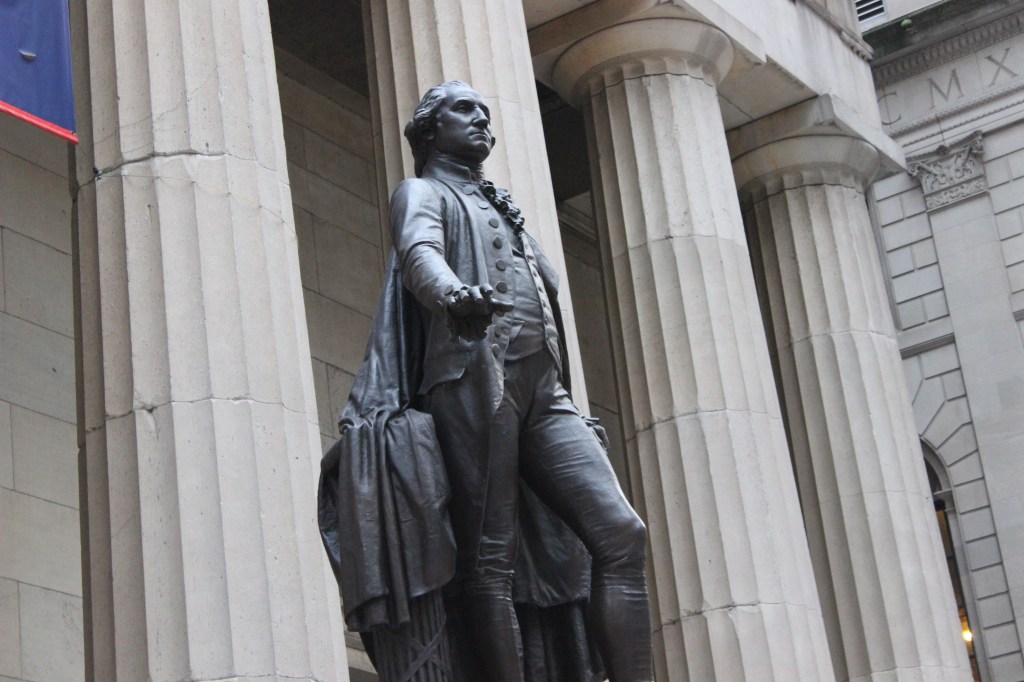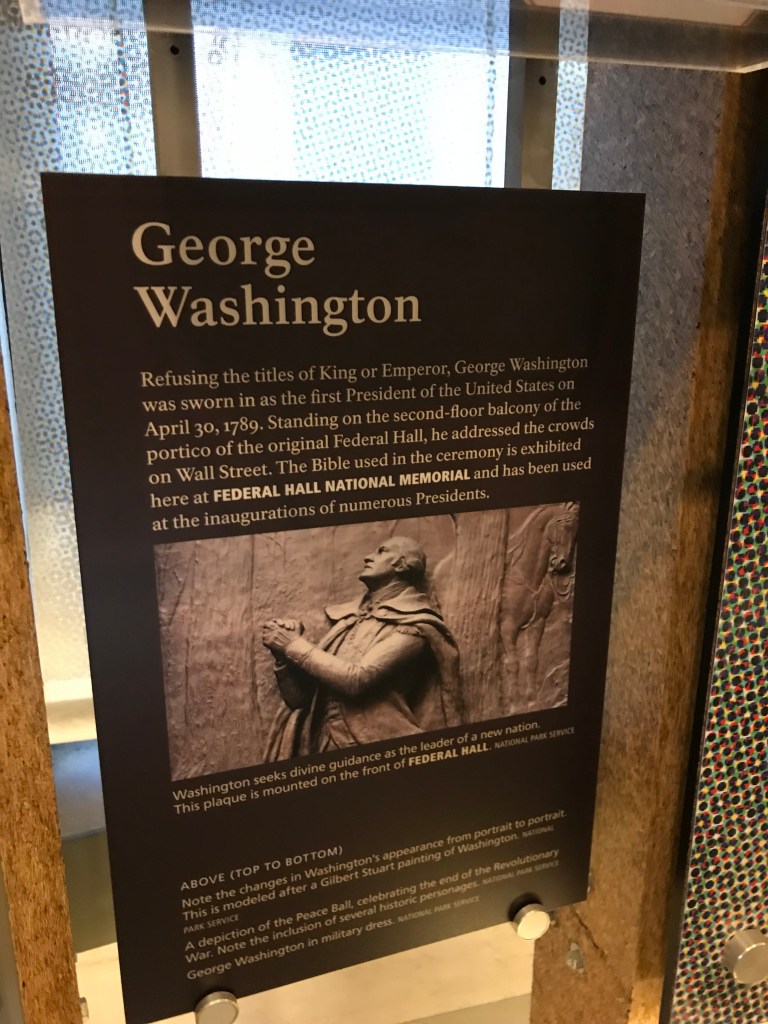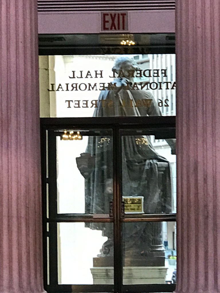 Dans le Lower Manhattan, au cœur du quartier de Wall Street, face à la bourse de New York, le Federal Hall National Memorial a été construit sur l’emplacement du premier Capitole des États-Unis. C’est ici dans le tout premier bâtiment, après que les pères fondateurs aient rédigé la Constitution à la fin des années 1780, que le Général George Washington a prêté serment et pris ses fonctions de premier Président des États-Unis le 30 avril 1789.